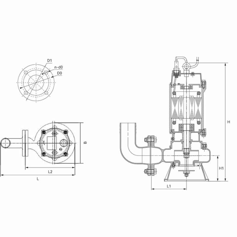 | 16 | 250WQ600-9-30S | 600 | 9 | 30 | 380 | 250 | 1450 | / | / | / | / | / | / | Φ250 | Φ335 | 12-Φ16 | Φ375 |